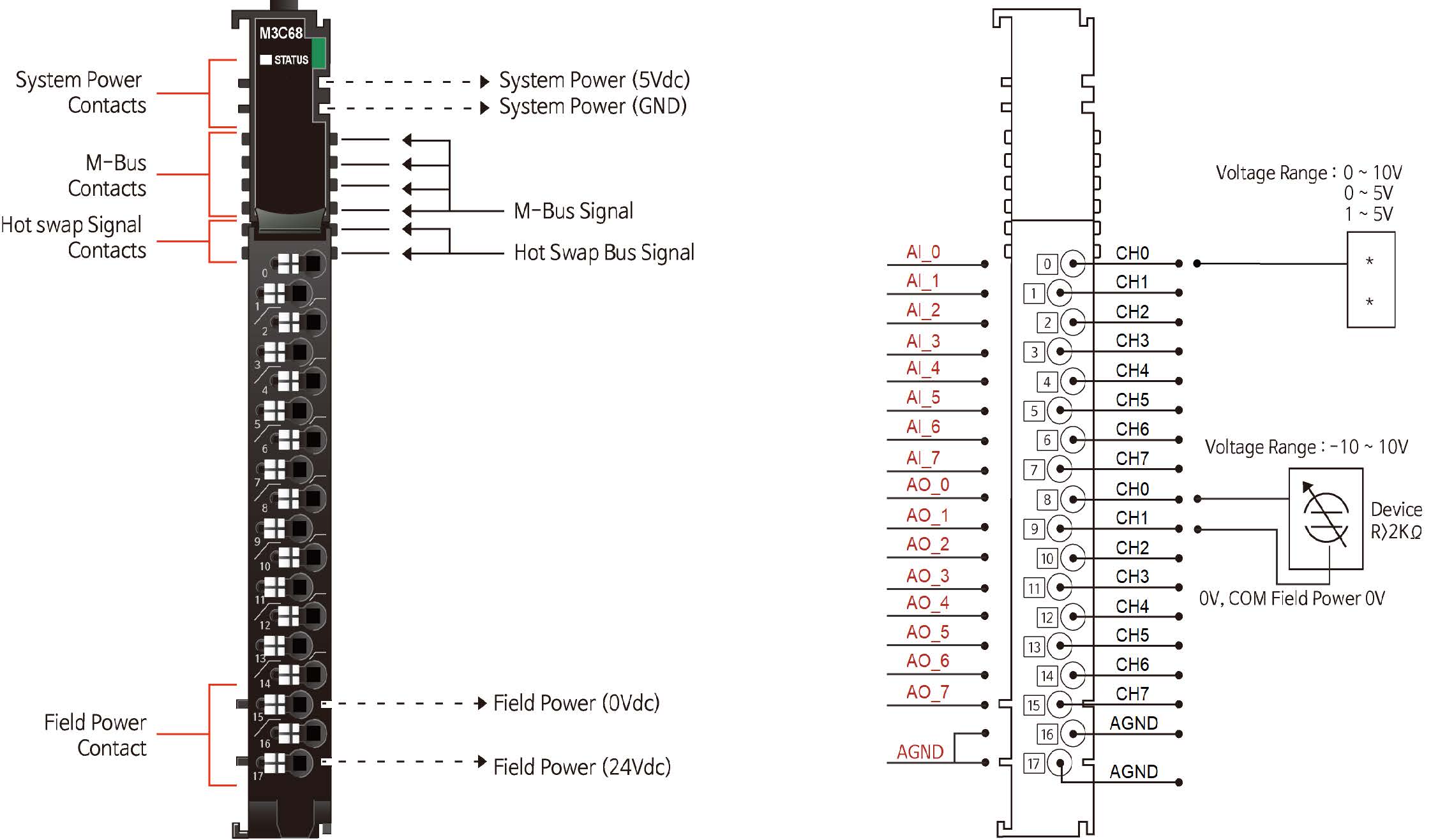 | Общие контакты | 2 контакта, 0 В полевого питания соединен с AGND |