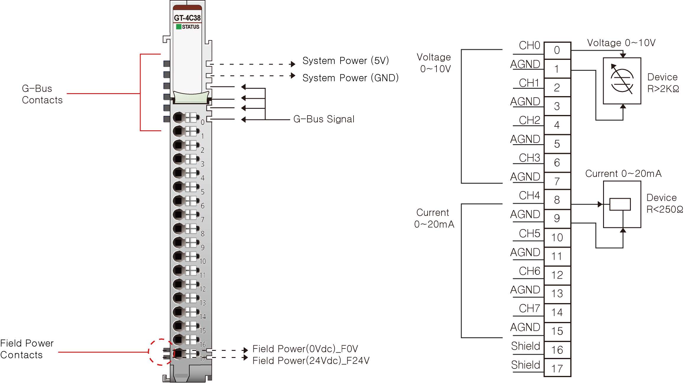 4 Common, Field Power 0V is Common(AGND) |