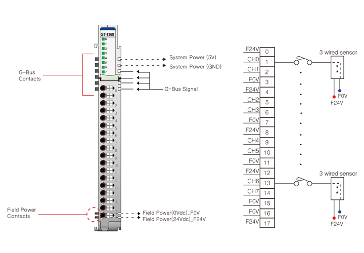—GT-1368 Дискретный ввод, 8DI, 24 В (DC), Source,3-проводной, RTB 18